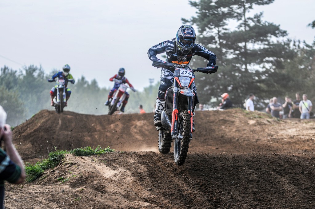 Odbiło się to tym, że od drugiego okrążenia zacząłem mieć problemy z rękami i złapałem pewnego rodzaju zadyszkę, tak więc musiałem czasem przystanąć, żeby krew wróciła na swoje miejsce i żeby łapy znowu przez jakiś czas działały. Jeśli chodzi o przeszkody, to nie stanowiły one dla mnie żadnego problemu. Trasa pod względem technicznych przeszkód była piękna i bardzo mi się podobała. 400-metrowe pole kamieni, beleczki, oponki i inne cuda superenduro – no miodzio! Także tu nadrabiałem, a traciłem na motocrossie i piasku. Jako człowiek wywodzący się z trialu i w dodatku z samego południa Polski, moją domeną nie są wysokie prędkości i to przez tak długi czas (ponad 3h!) oraz piach. Brrr tego ostatniego naprawdę nie lubię.