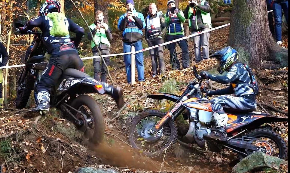 Takie przeszkody jak zeskoki ze skalnych półek na gazie w dół robiły wrażenie, ale nie była to dla mnie nowość. Wyskoki też! Jechałem więc swoje zarówno w górę, jak i w dół. Jak wielu riderów traciłem czas na podjeździe, który łapał największy zator. Trudno tam było o atak, więc czekałem na swoją kolej.