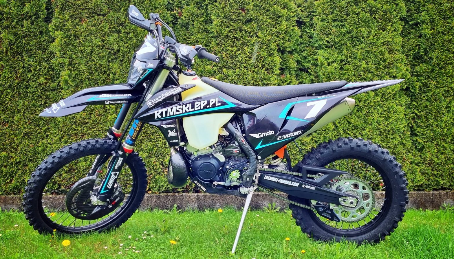 Widzicie dyfuzor, a więc jak nietrudno się domyślić, kontynuuję swoją przygodę z 2T i wybrałem to, co najlepsze w ciężki teren – model 300 EXC TPI. Po prostu niezastąpiony! Ten motocykl jest dosłownie jak uszyty dla mnie na miarę, dzięki czemu mogę z wielką radochą i płynnością katować sekcje trialowe, penetrować ekstremalnie trudne potoki Hard Enduro i realizować treningi na torze SuperEnduro.